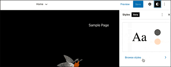 Với sự cải tiến mới của WordPress 6.0 vấn đề chuyển đổi phong cách chủ đề trở nên đơn giản. bạn chỉ cần thực hiện một thao tác ở bên góc phải, sau đó chọn phong cách mà bạn yêu thích. Như vậy khi xây dựng chủ đề, bạn có thể tự cài đặt để người dùng có thể chuyển sang nhiều chế độ xem khác nhau.