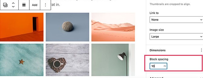 - Khoảng cách hình ảnh thư viện: Bạn có thể chỉnh khoảng cách giữa các viền ảnh với nhau.
