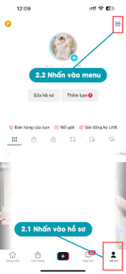 Nhấn vào hồ sơ và chọn menu
