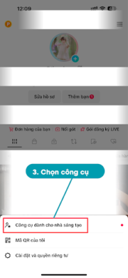 Bước 3: Nhấn vào Công cụ dành cho Nhà sáng tạo, rồi nhấn vào Gói đăng Ký. Nếu bạn chưa tham gia chương trình Creator Next, bạn cần nhấn vào Đăng ký và làm theo các hướng dẫn trên màn hình.