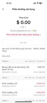 Bước 5: Sau khi bật tính năng Tiền boa, bạn có thể bắt đầu livestream trên TikTok và nhận được các đồng xu ảo hoặc quà tặng từ người xem. Bạn có thể xem số lượng và loại hình donate mà bạn nhận được trong phần Số dư trong Cài đặt và quyền riêng tư.