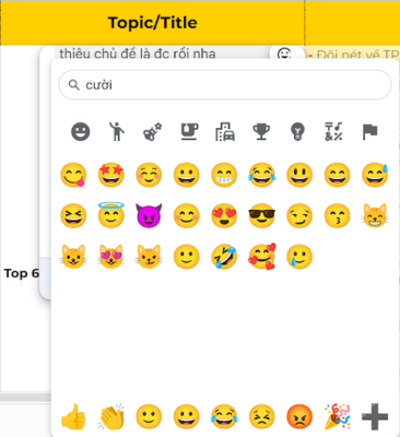- Tăng tương tác: Người dùng đã báo cáo rằng việc sử dụng biểu tượng cảm xúc tăng cường sự tương tác và tham gia của họ trong các cuộc họp trực tuyến và bảng thảo luận trên Google Sheet.