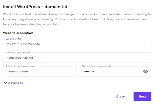 - Administrator password: Mật khẩu đăng nhập vào WordPress