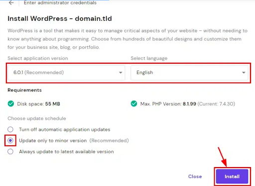 Hoàn thành bước đầu tiên cài đặt WordPress miễn phí