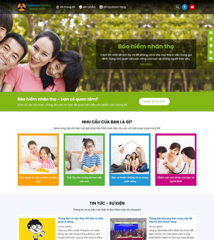 Giao diện "Website Bảo Hiểm" phù hợp với các khách hàng là những đơn vị Doanh Nghiệp & Dịch Vụ