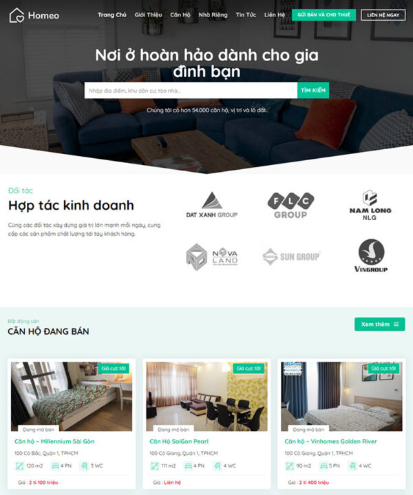 Giao diện "Website bất động sản 08" phù hợp với các khách hàng là những đơn vị Bất Động Sản