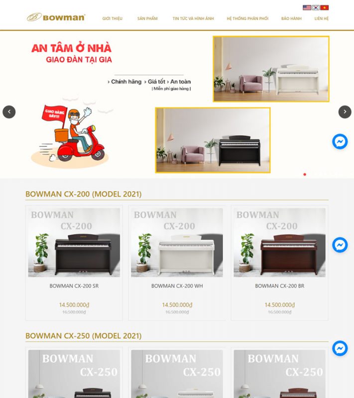 Giao diện "Website Bowman PIANO" phù hợp với các khách hàng kinh doanh về lĩnh vực bán hàng