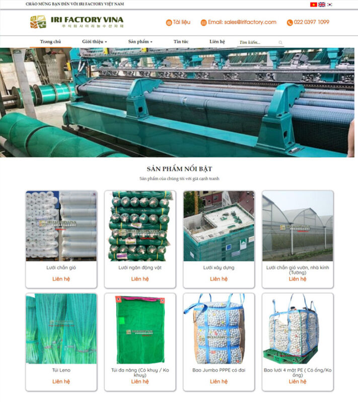 Mẫu "Website IRI FACTORY VIỆT NAM" bao gồm nhiều tính năng phù hợp cho mục tiêu giới thiệu công ty, sản phẩm, dịch vụ và bán hàng: