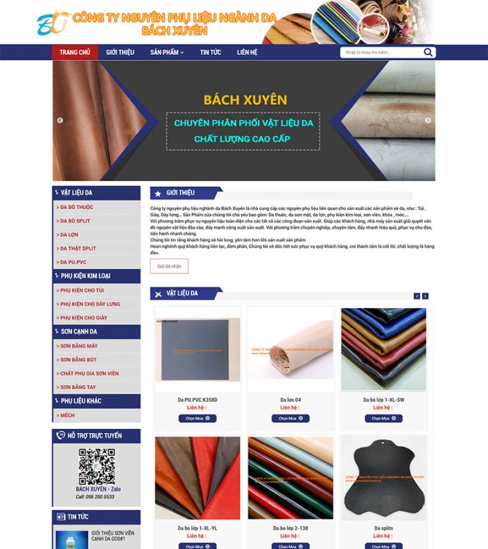 Giao diện "Website Nguyên phụ liệu da" phù hợp với các khách hàng là những đơn vị Doanh Nghiệp & Dịch Vụ