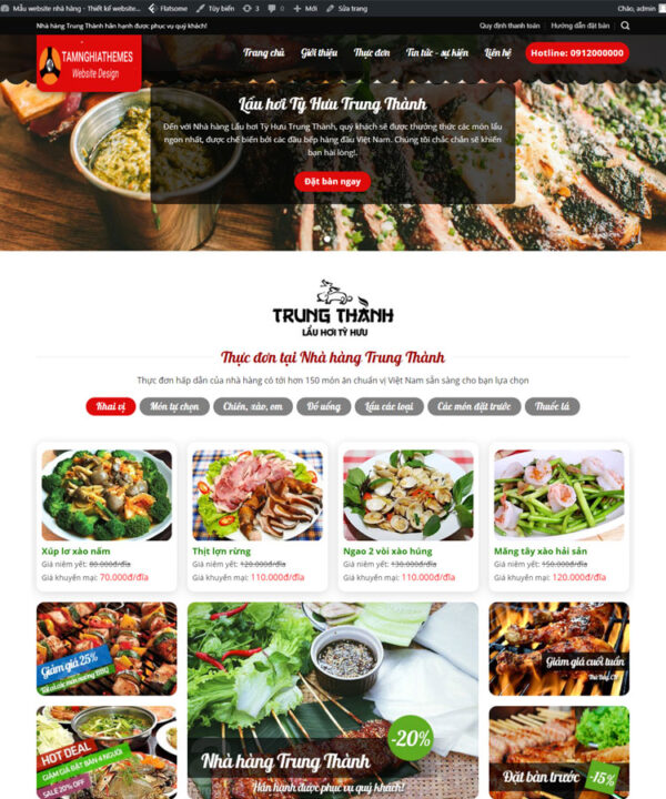 Giao diện "Website nhà hàng 07" phù hợp với các khách hàng là những đơn vị Ẩm thực & Nhà hàng
