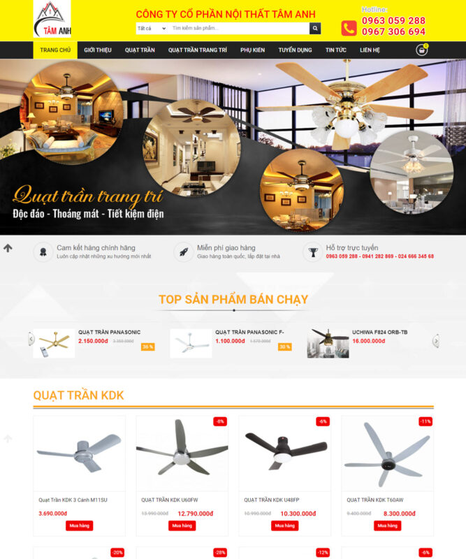 Mẫu "Website quạt điện" bao gồm nhiều tính năng phù hợp cho mục tiêu giới thiệu sản phẩm và bán hàng: