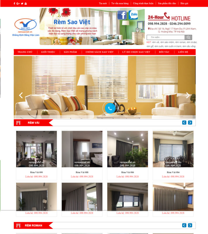 Giao diện "Website Rèm sao Việt" phù hợp với các khách hàng kinh doanh về lĩnh vực nội thất hoặc trang trí văn phòng