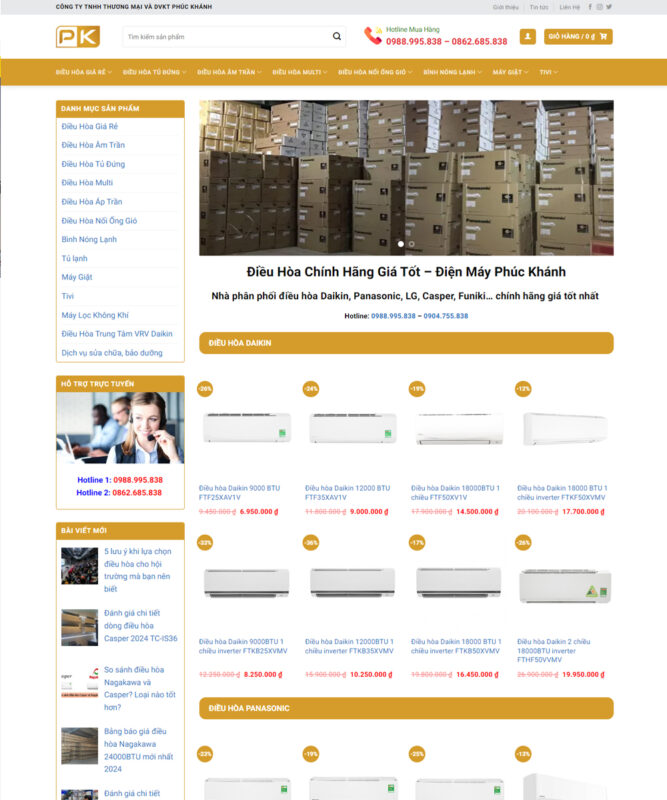 Giao diện "Website siêu thị điện lạnh 01" phù hợp với các khách hàng kinh doanh về lĩnh vực điện gia dụng hoặc đồ gia dụng