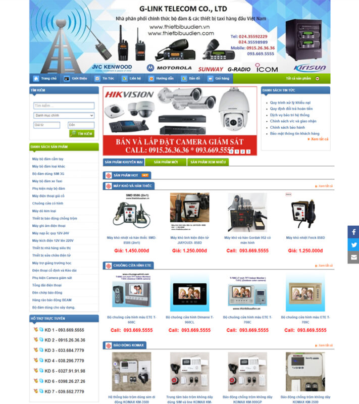 Mẫu "Website Thiết bị bưu điện" bao gồm nhiều tính năng phù hợp cho mục tiêu giới thiệu sản phẩm và bán hàng: