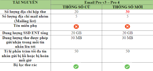 Thông số Email Pro 4 thay đổi so với Email Pro v3