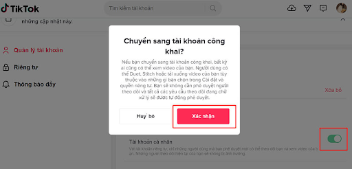 - Chọn mục tài khoản riêng tư thành tài khoản công khai. Như vậy là kênh của bạn đã được đặt về chế độ Public với tất cả người xem.