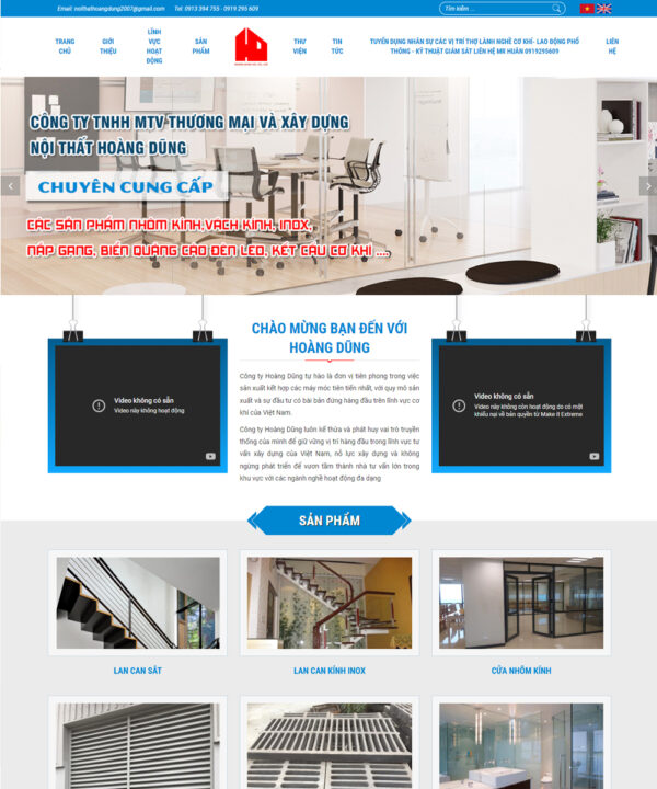 Website cơ khí: nhôm kính, vách kính, biển quảng cáo HD