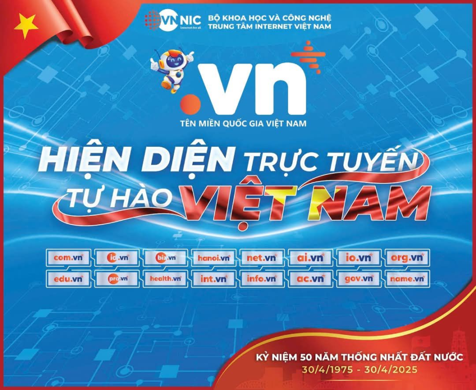 50 năm trước với đại thắng mùa xuân 30/4/1975, Việt Nam đã khẳng định chủ quyền toàn vẹn lãnh thổ trên từng tấc đất, ngọn núi, con sông, biển đảo. Trong thời đại số hôm nay, chúng ta tiếp nối tinh thần ấy bằng cách khẳng định chủ quyền trên không gian số – qua từng tên miền .VN, lá cờ nhỏ mang niềm tự hào Việt Nam vươn ra thế giới.