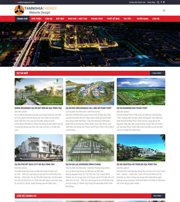 Giao diện "Website Bất Động Sản Mới 06" phù hợp với các khách hàng là những đơn vị Bất Động Sản