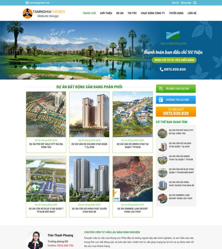 Giao diện "Website Bất Động Sản Mới 07" phù hợp với các khách hàng là những đơn vị Bất Động Sản