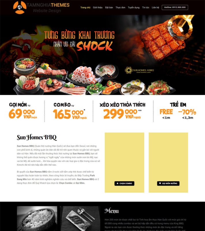 Giao diện "Website BBQ" phù hợp với các khách hàng là những đơn vị Ẩm thực & Nhà hàng