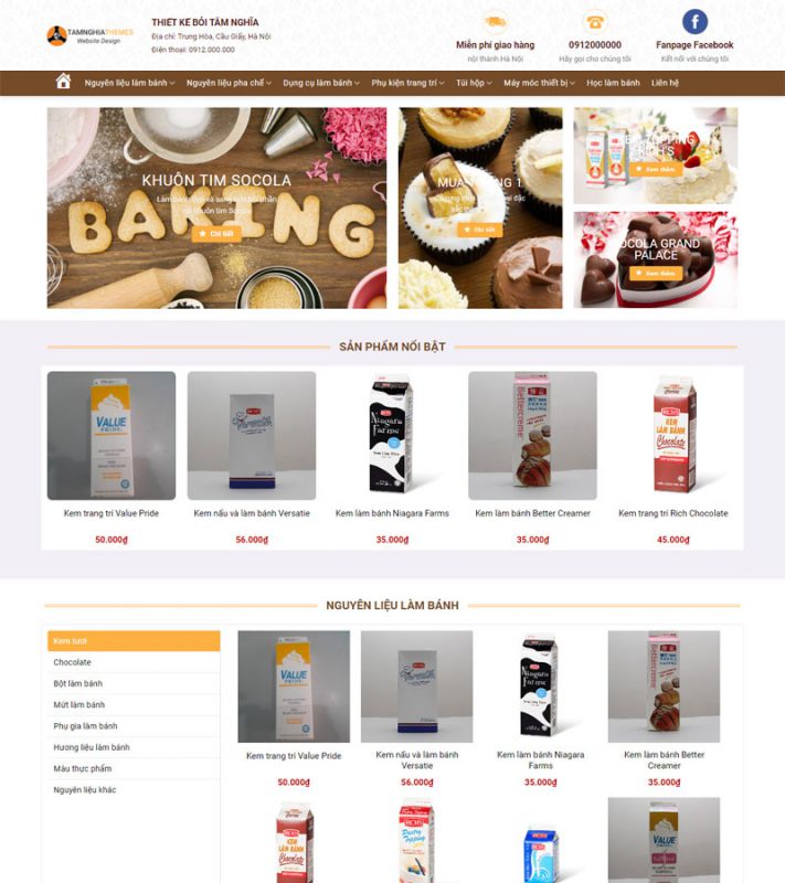 Giao diện "Website Cake 02" phù hợp với các khách hàng là những đơn vị Ẩm thực & Nhà hàng