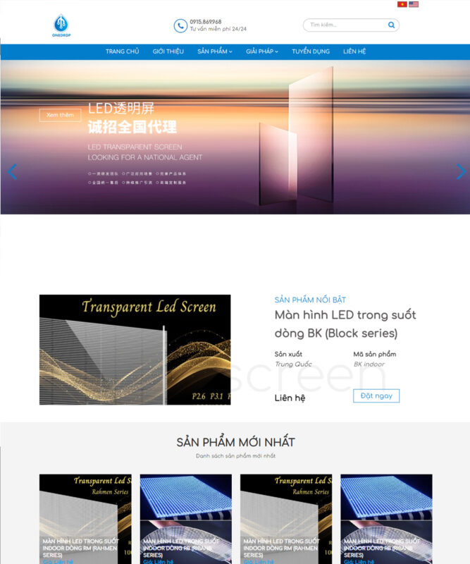 Giao diện "Website đèn led onedrop" phù hợp với các khách hàng kinh doanh về lĩnh vực thiết bị điện tử, phụ kiện hoặc công nghệ