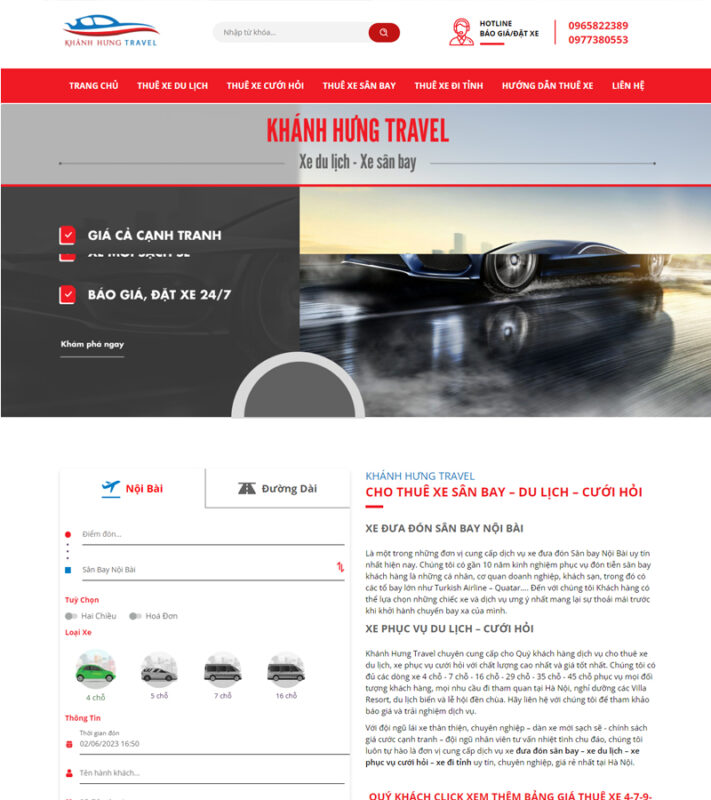 Website dịch vụ cho thuê xe Khánh Hưng