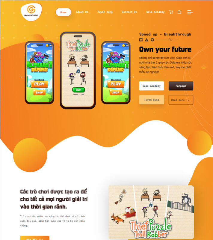 Giao diện "Website Game" phù hợp với các khách hàng là những đơn vị Doanh Nghiệp & Dịch Vụ