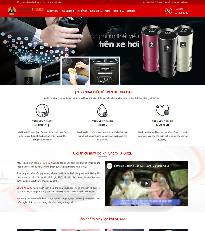 Mẫu "Website Máy Lọc Khí" bao gồm nhiều tính năng phù hợp cho mục tiêu giới thiệu sản phẩm và bán hàng: