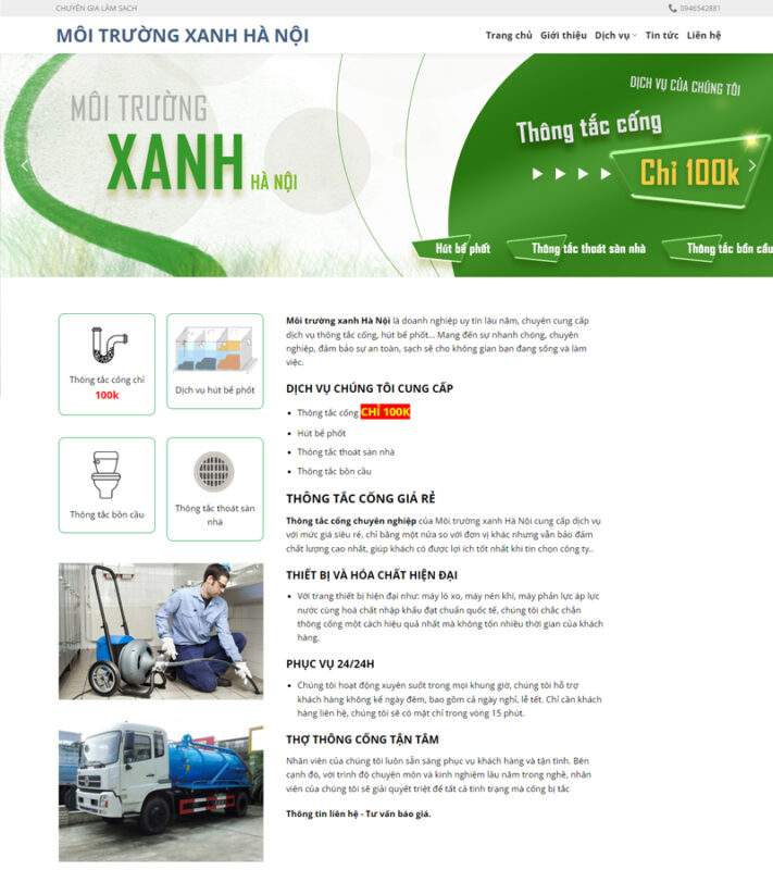 Mẫu "Website môi trường xanh Hà Nội" bao gồm nhiều tính năng phù hợp cho mục tiêu giới thiệu công ty, sản phẩm, dịch vụ và bán hàng: