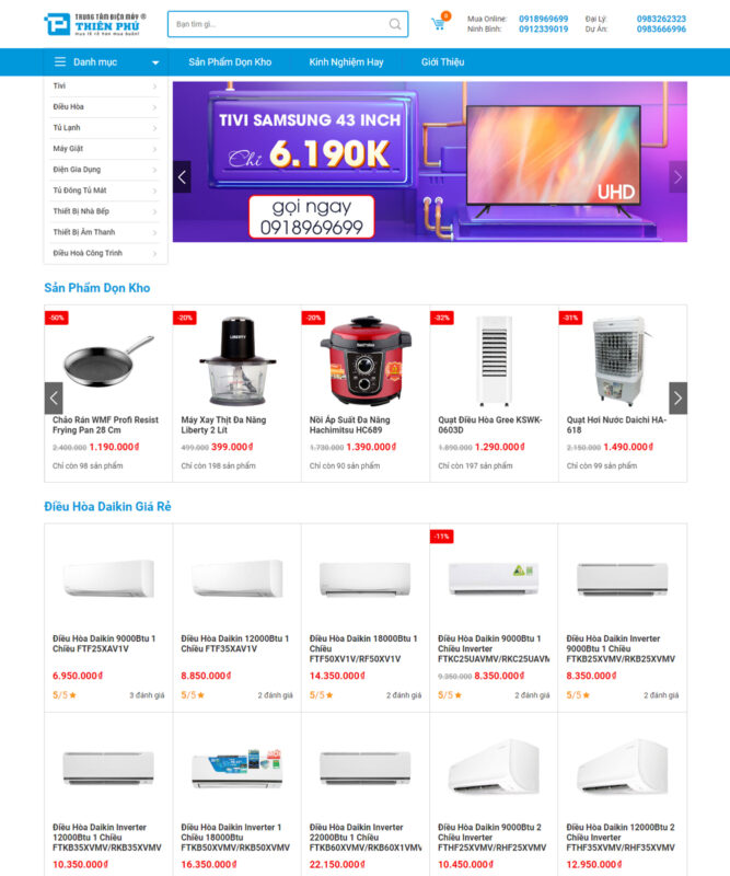 Giao diện "Website siêu thị điện máy 04" phù hợp với các khách hàng kinh doanh về lĩnh vực điện gia dụng hoặc đồ gia dụng