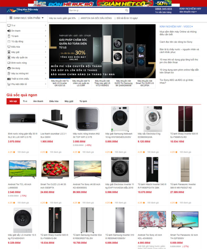 Website tổng kho điện máy