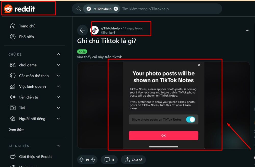 Tiktok thông báo trên mạng xã hội Reddit rằng TikTok sắp ra mắt một ứng dụng mới dành cho việc chia sẻ ảnh, với tên gọi TikTok Notes. Điều đáng chú ý là ứng dụng này sẽ chuyển đổi “các bài đăng dạng hình ảnh TikTok công khai hiện tại và trong tương lai” sang bài đăng trên nền tảng mới của mình.